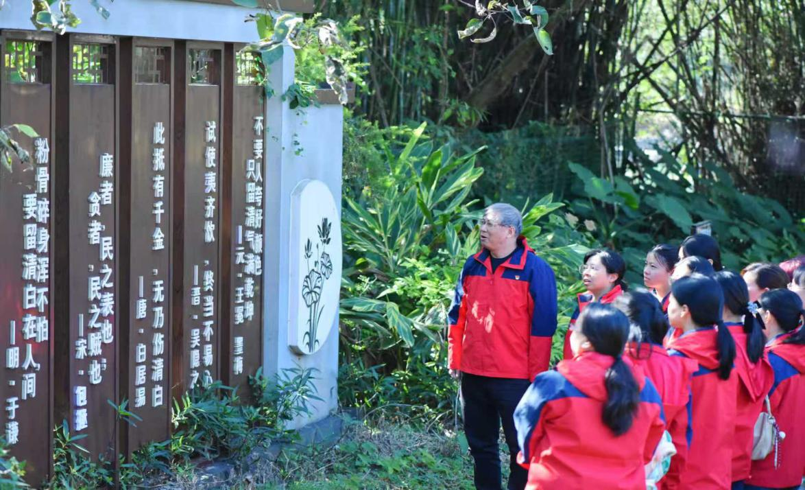 在党支部书记李东远的带领下,党员及新入职员工沿遇龙河休闲步道实地参观,逐一驻足于廉洁文化石刻、廉政故事雕塑前,仔细聆听讲解,深入了解石刻中廉政诗词的内涵、雕塑所呈现廉洁人物的事迹。在“花语廉心”示范点,通过以多种花语喻廉的展示,直观感受“清廉、勤俭、和谐”的主题内涵。山水间的廉洁元素与自然风光相融,让廉政教育从“说教式”转向“沉浸式”,党员们在观廉、品廉的过程中,进一步领会了廉洁文化的时代价值。