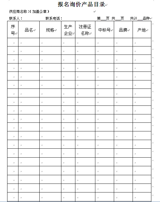 二、报名材料: 符合《中华人民共和国政府采购法》第二十二条规定,具备合法资格,报名时提供供应商有效的营业执照、组织机构代码证复印件(三证合一无此项)、税务登记证复印件(三证合一无此项)、法人及被委托人身份证复印件、企业授权委托书原件、报名产品目录、报价表(自备信封封好)。(所有材料加盖公章,否则报名无效,采用唯一报价。)