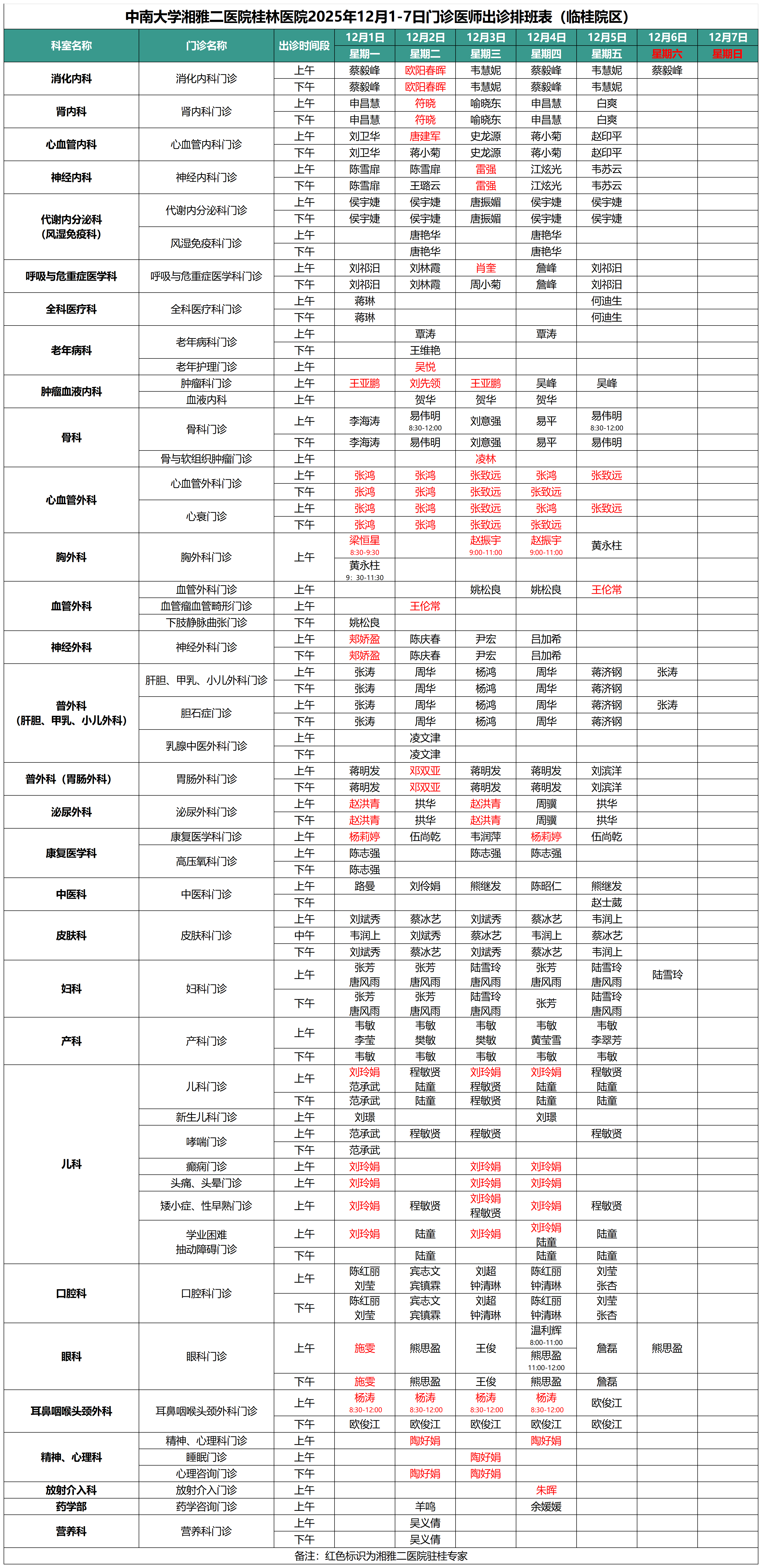 每周更新丨中南大学湘雅二医院桂林医院最新门诊出诊安排(12.1-12.7)