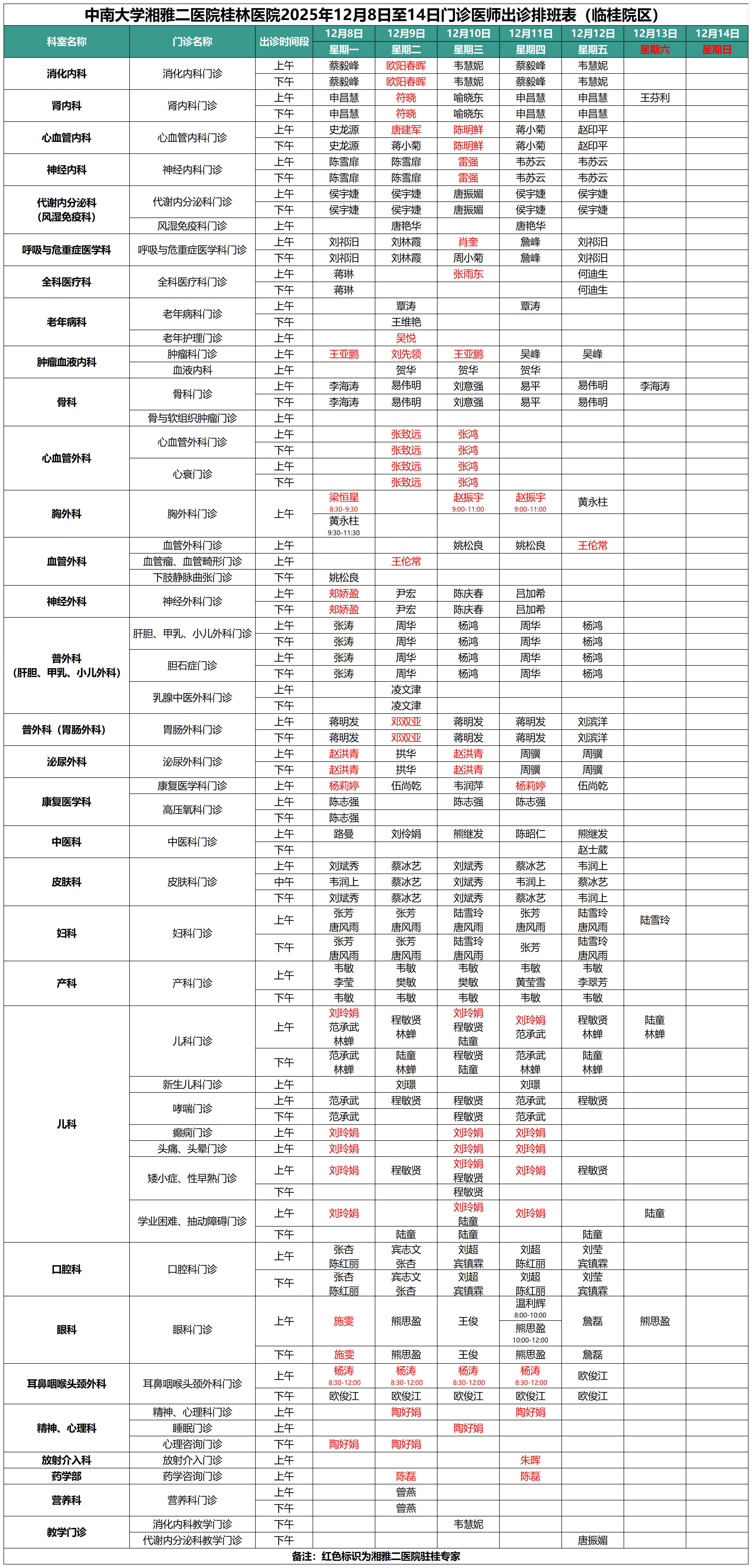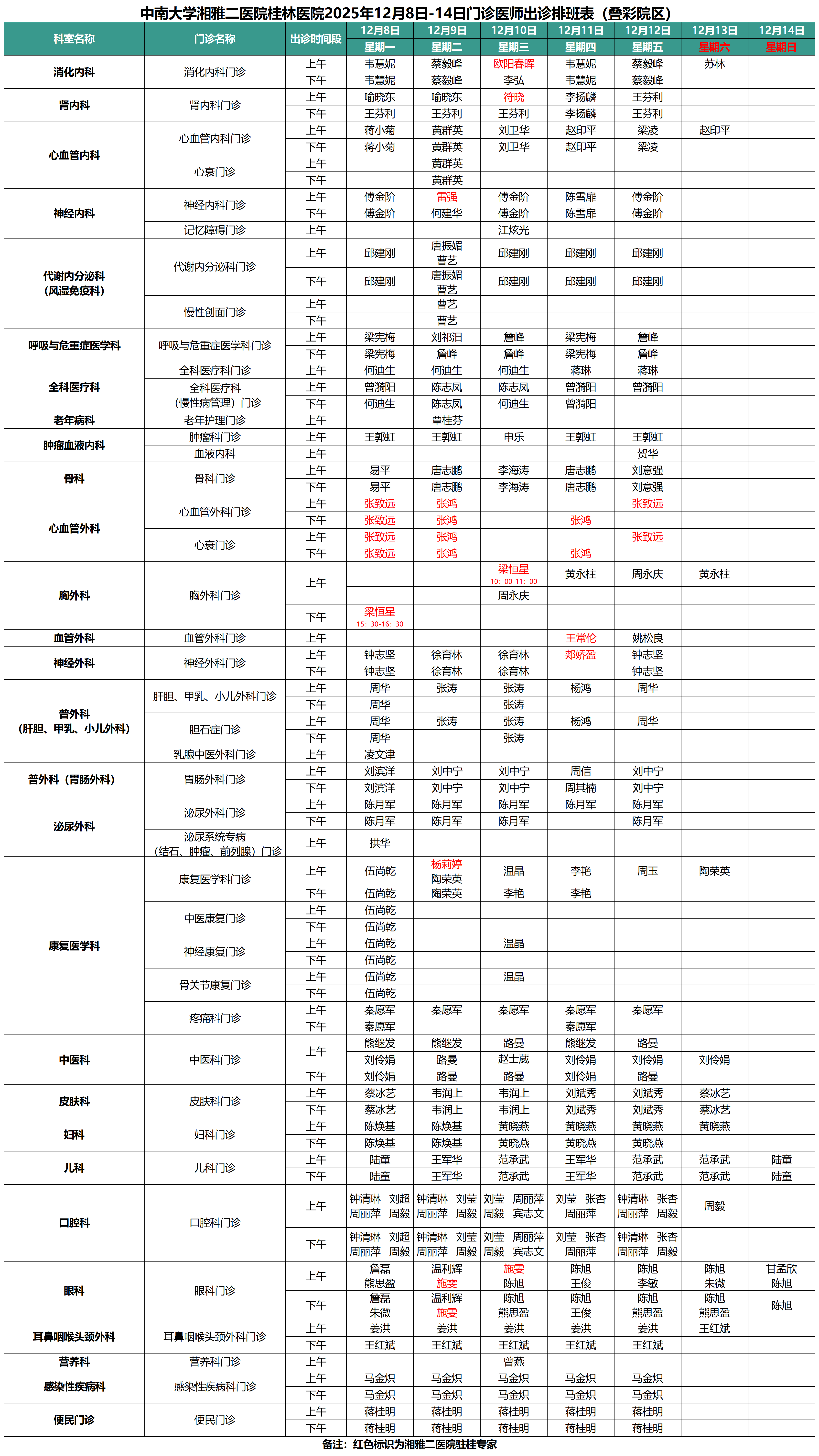 每周更新丨中南大学湘雅二医院桂林医院最新门诊出诊安排(12.8-12.14)