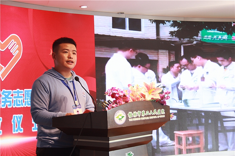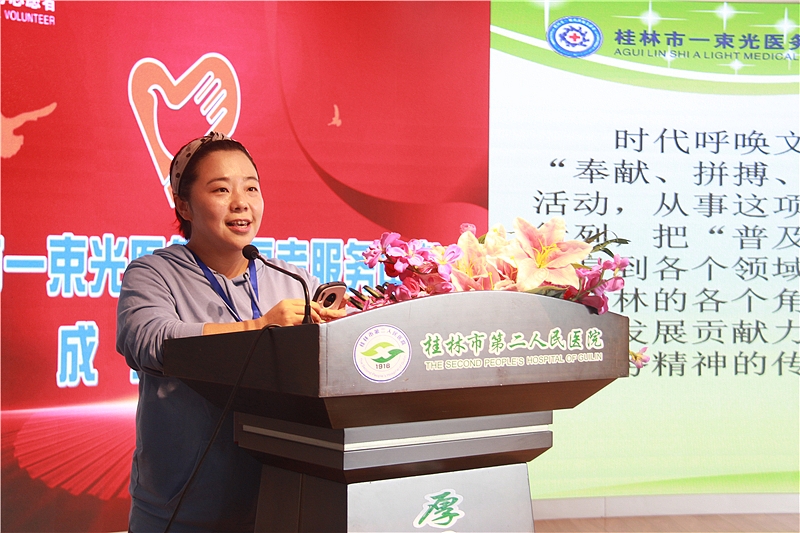 桂林市“一束光”医务志愿者服务中心监事谢杉杉代表宣读志愿者倡议书