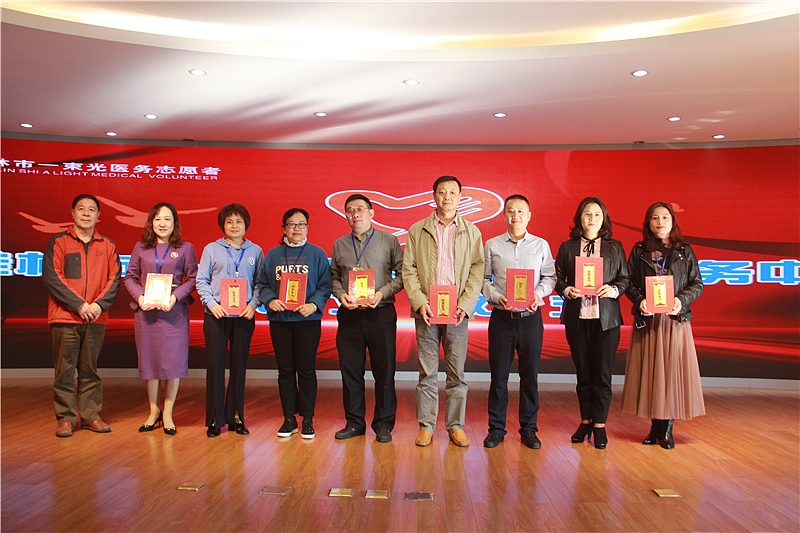 随后,市行政审批局相关人士为“一束光”医疗志愿者服务中心授牌,医院党委书记何毅向“一束光”荣誉理事颁发了荣誉证书,各爱心企业向该中心进行公益捐款。
