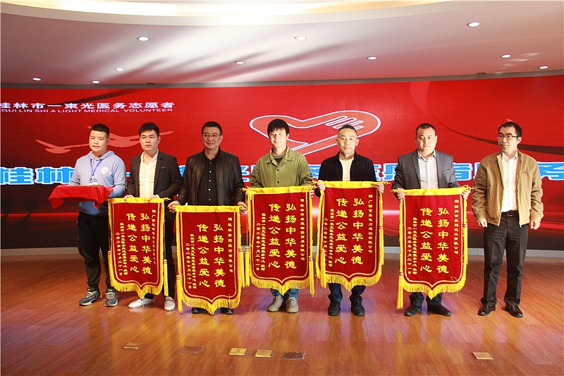为进一步扩大志愿服务活动的影响力,积极弘扬志愿者精神,不断加强和完善医务志愿服务体系建设,切实发挥医务志愿服务在社会的积极作用,10月21日下午,桂林市“一束光”医务志愿者服务中心在桂林市第二人民医院行政楼5楼举行成立仪式。桂林市卫健委四级调研员唐剑林、桂林市第二人民医院党委书记何毅、桂林市行政审批局科长廖陈伟、叠彩区部委办局相关领导、医院相关领导及爱心企业家和一束光医务志愿者服务中心会员等共计100余人参加仪式。