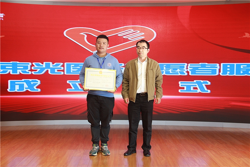 市行政审批局科长廖陈伟为“一束光”医疗志愿者服务中心授牌