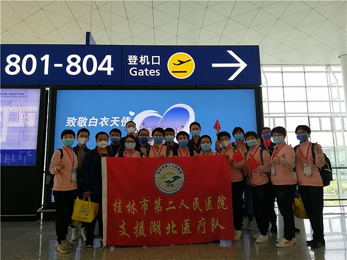 桂林市第二人民医院第二批医疗队员在武汉机场合影