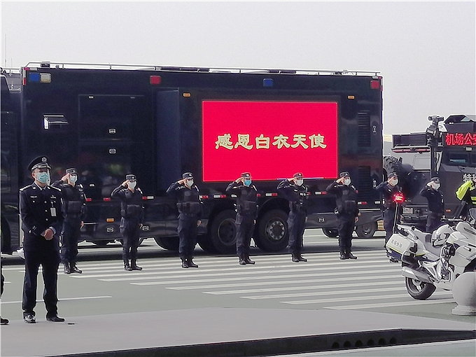 武汉交警以最高的规格为“白衣战士”护航,一直护送队员们到天河机场