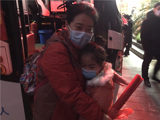 第二批医疗队队长谢杉杉即将登车离开,母女即将短暂分别,依依不舍