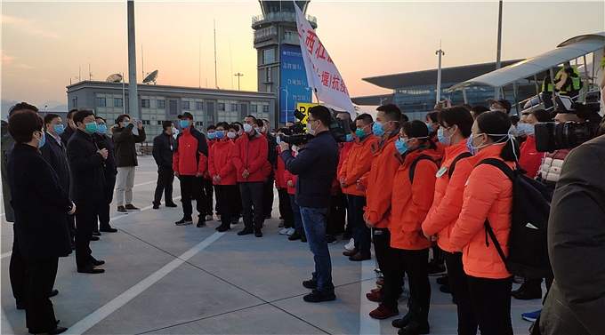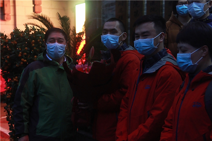 2月12日凌晨5点,医院为四名出征队员举行简短欢送仪式,院领导在仪式上为他们献上鲜花加油鼓劲,希望他们不辱使命,用自己精湛的技术让湖北人民早日摆脱病毒的侵蚀,早日战胜新冠病毒。