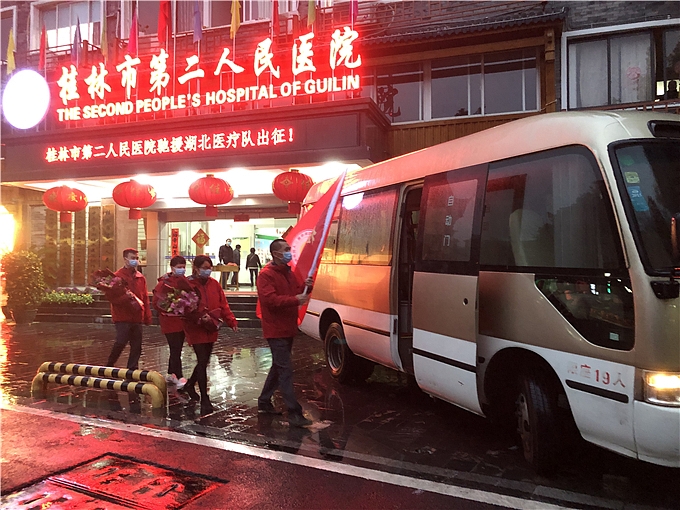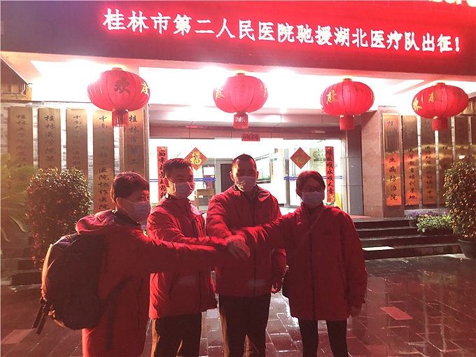 2月12日晚上六点,由4名医护人员组成的桂林市第二人民医院赴鄂支援医疗队紧急集结,作为桂林市首批、广西第三批队员到达湖北十堰市执行医疗任务。