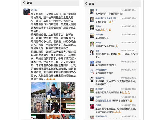 自接到广西卫健会下发通知,桂林市卫健委迅速部署,桂林市第二人民医院立即动员倡议,医务人员纷纷踊跃报名,150余名医生、245名护士,其中男护士28名以集体名义请求参加,部分医护人员书写请战书,希望参加支援湖北,在最前线抗击疫情。