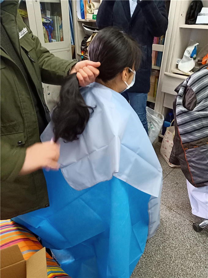 马玉作为护理组组长,一直在呼吸内科工作,性格活泼开朗,对呼吸系统疾病患者的护理有较丰富的经验,此次应征将是她发挥自己强项的时候,相信也能通过此次疫情锻炼,将对呼吸系统疾病的护理更加娴熟;留有一头长发的她,得知即将出征,她叫来同事为她将头发剪短。