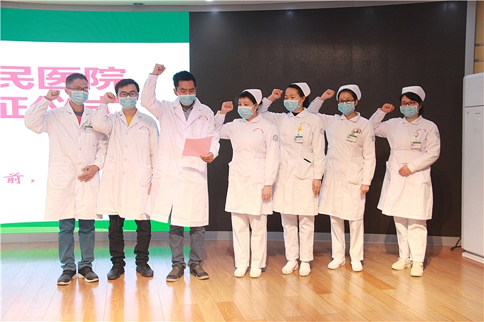 2月8日下午,医院为他们举行了简短的出征仪式,院领导在仪式上为他们献上鲜花加油鼓劲,希望他们不辱使命,用自己的技术让湖北人民早日摆脱病毒的侵蚀。仪式上,4名即将出征的队员和3名预备队员进行了宣誓。来自呼吸与危重症医学科的队员马玉还向党组织递交了入党申请书。