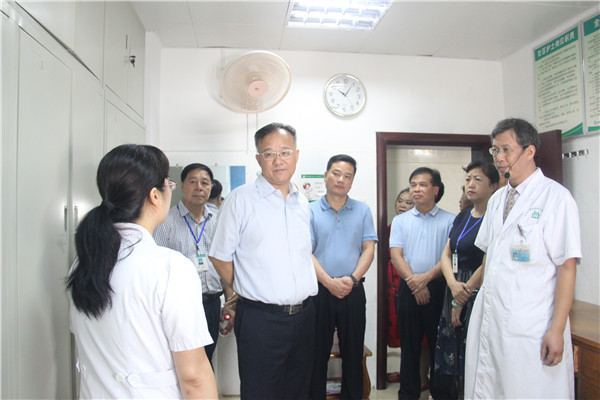 7月2日,自治区政府副主席黄俊华,自治区卫健委副主任梁远,桂林市副市长兰燕,叠彩区区委书记余捷,市卫计委党组书记王芳等一行,在我院党委书记何毅、院长颜丽萍等陪同下,到叠彩社区卫生服务中心调研指导工作。