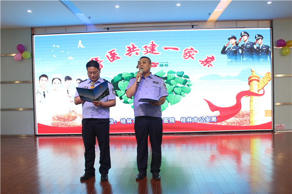 当天,在桂林市北院大礼堂,民警与医护人员一起进行了诗歌朗诵、红歌对唱、洗手操等节目表演。
