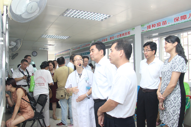 9月20日,国家卫生计生委直属机关党委常务副书记杨建立一行在自治区卫生计生委副主任梁远、市委常委、副市长何翔、市卫生计生委主任王芳、市二医院院长颜丽萍、党委书记何毅等领导陪同下到桂林市第二人民医院下辖的叠彩社区卫生服务中心进行医联体建设和家庭医生签约服务方面的调研。