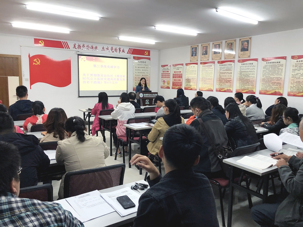 为贯彻落实党中央和自治区党委关于加强公立医院党建工作的部署要求,不断推进医院党建高质量发展,9月27日上午,桂林市第二人民医院机关党支部召开专题学习会,深入学习自治区党委组织部、自治区卫生健康委党组印发的《推进新时代公立医院党建高质量发展的若干措施》等4个文件精神。机关党支部支部委员、党员等40余人参加会议,机关党支部书记蒋蕾主持会议。