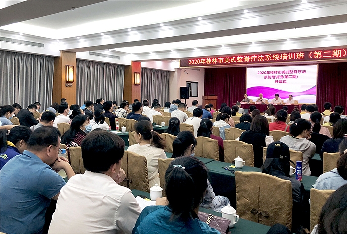 9月19日至20日由桂林市医学会全科医学分会主办、桂林市第二人民医院南院(南门社区卫生服务中心)承办的2020年桂林市美式整脊疗法系统培训班(第二期)在新桂大酒店圆满举行,桂林市医学会全科医学分会主任委员、市第二人民医院党委书记何毅、南院院长唐红鹰、党支部书记黄朝晖出席了本次培训班,来自十一县六城区各医院、四川骨科医院、南宁、贺州及河池等地的医务人员共计120余人参加了培训。
