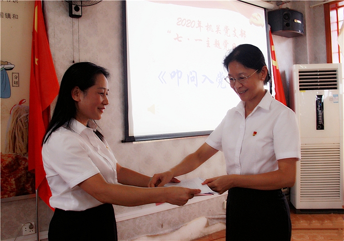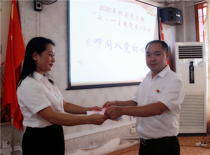 党员活动中,机关党支部书记带领大家重温了入党誓词,面对党旗庄严宣誓,重温入党时的情景,回顾入党宣誓时的庄严承诺和坚定决心,增强党性意识,坚定入党信念。以题为《九十九载铸辉煌,长风破浪再起航》散文诗歌颂伟大的中国共产党“人民至上、生命至上”初心使命及辉煌成就,全体党员向党支部依次递交了《给党的一封信》,4名优秀党员代表宣读了自己《给党的一封信》,对照入党时的承诺和誓言,找一找自己当初的承诺那些做到和没有做到,“叩问入党初心”,让大家了解他们的成长过程。通过“红歌名抢答”、“党纪知识趣味竞赛”等寓学于乐的活动方式,进一步激发党员们学习党章党规党纪相关知识的积极性,达到学思浅悟的效果。活动中还对支部“学习强国”前十名党员进行了表彰。
