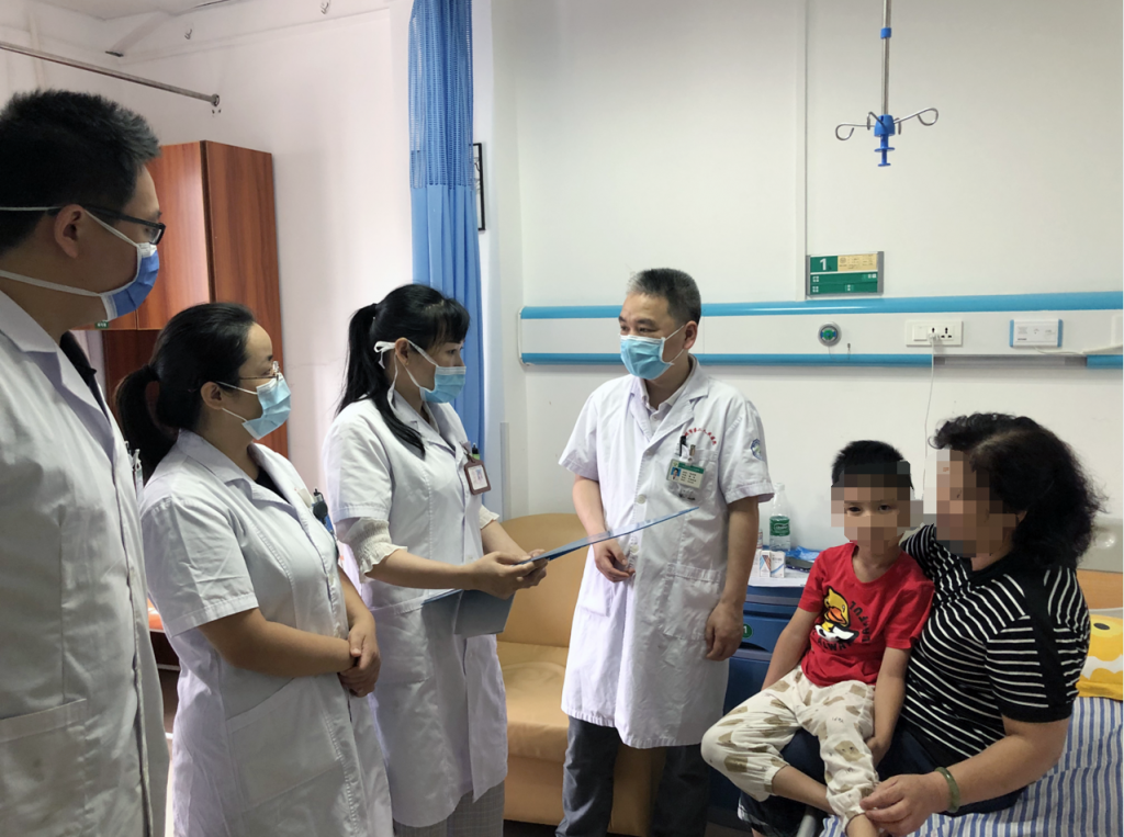 桂林市第二人民医院副院长、眼科中心主任温利辉进行查房,询问小喆术后状况,并告知家属术后注意事项