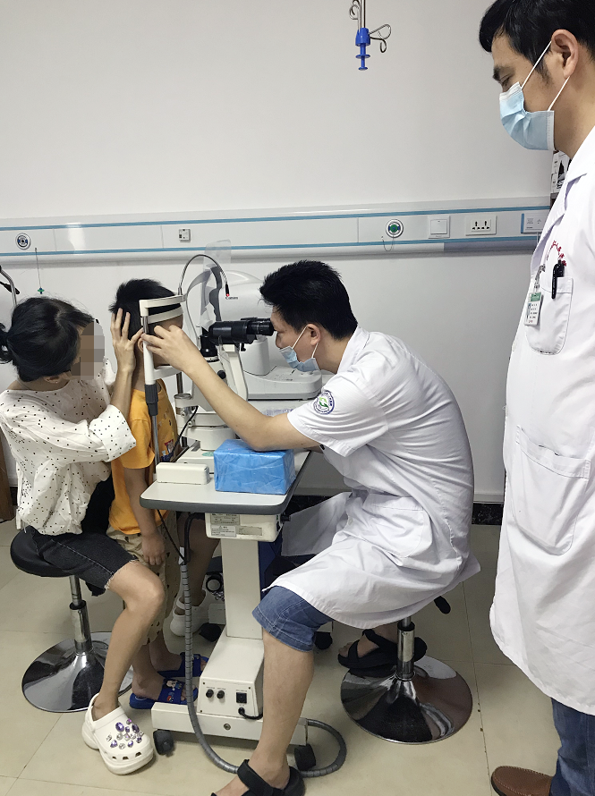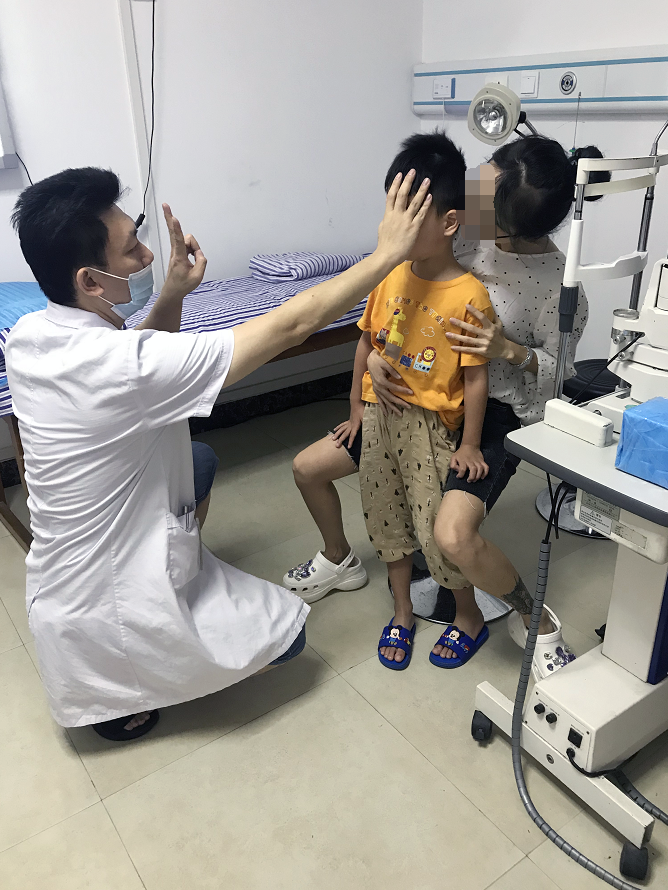 医师为小喆做术后视力检查