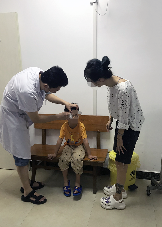 术后第二天,医师为小喆揭开纱布