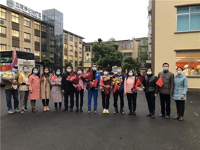 院领导及相关科室同事到场迎接医疗队员凯旋归来