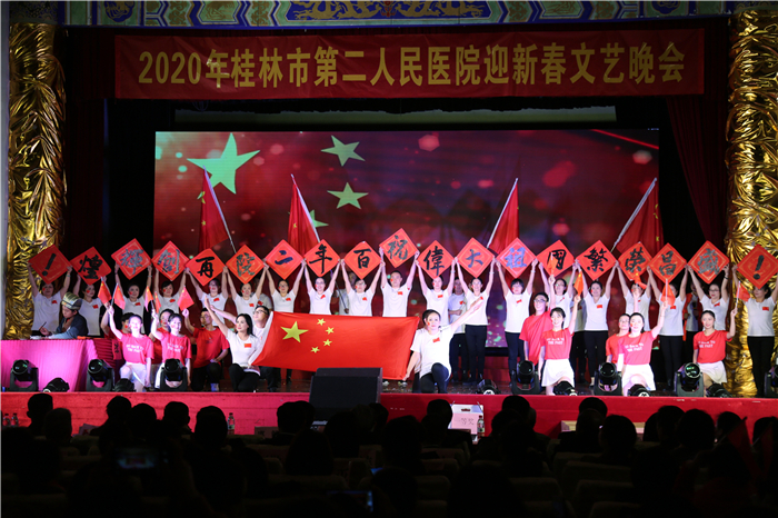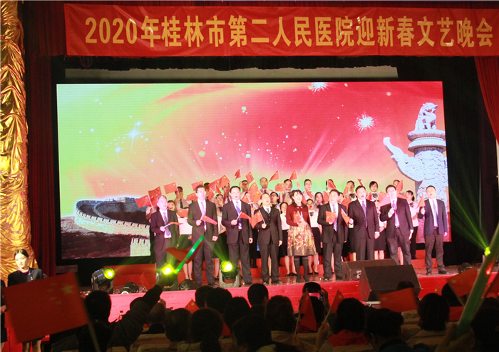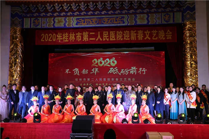 鼓乐齐鸣、欢歌笑语、辞旧迎新,又是一年岁末时,在新春即将到来之际,1月9日晚,桂林市第二人民医院举办了“不负韶华,砥砺前行”庆2020年迎新春文艺晚会,医院职工与联谊单位一起借此机会欢聚一堂,共同迎新。大家自编自演,用悠扬的歌声、曼妙的舞姿、如花的笑靥,喜迎新年的到来。桂林市公安局叠彩分局、南铁桂林站、资源县人民医院、陶然居敬老院等联谊和医联体单位也组织节目向市二医院职工献祝福。桂林市卫计委、桂林市公安局、南铁桂林站等单位领导、桂林市第二人民医院历届部分领导、医院现任领导班子出席晚会。