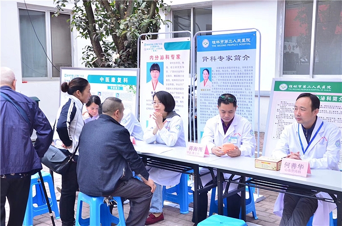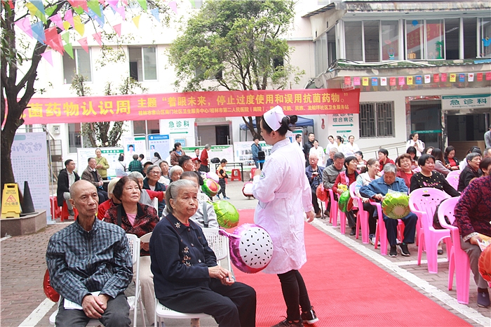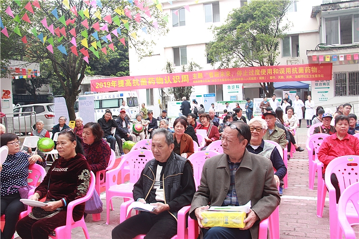 医务人员在现场向居民宣传抗菌药物使用注意事项