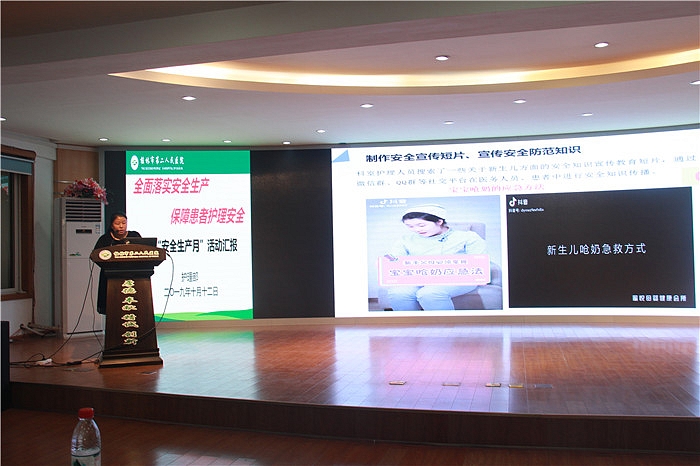 在“安全生产月”期间,护理部组织进行安全知识的培训,组织全院“消除安全隐患,保障患者安全”的案例评比,进行“提高护理人员安全理念、增强护理人员业务素质”为主题的应急预案演练。各科室组织护理人员进行核心制度、应急预案、不良事件上报、危急值、毒麻药品管理等知识的培训和考核;制作安全知识宣传教育短片,通过网页、微信群、QQ群等社交平台在医务人员、患者中进行安全知识宣传;在日常护理工作中开展“身边隐患随手拍”活动,随时发现查找安全隐患,科室成员发挥头脑风暴共同分析原因,并采取有效措施整改;做好重点人员、重点环节、重点病人、重点部位的管理,严格规范护理行为,有效防控不安全因素;开展不良事件讨论、持续改进护理质量等一系列活动,以增强医务人员应急意识、提升医务人员安全素质、提高防灾减灾救灾能力、杜绝安全事故出现,并将安全隐患问题进行有效整改,做到防范未然的目的。