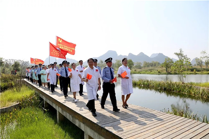 为庆祝新中国成立七十周年,共享祖国伟大荣光的浓厚氛围,我院携手桂林市公安局叠彩分局在芦笛岩景区开展“壮丽七十年,警医共向祖国献礼”主题活动。
