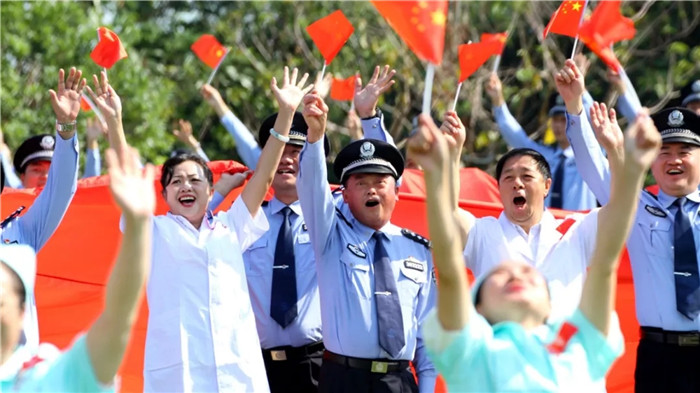 此外,医院及叠彩公安局的领导与大家一同参加了为祖国奔跑一公里比赛,医务人员和公安干警共向新中国成立70周年献祝福语,祝福祖国繁荣昌盛。