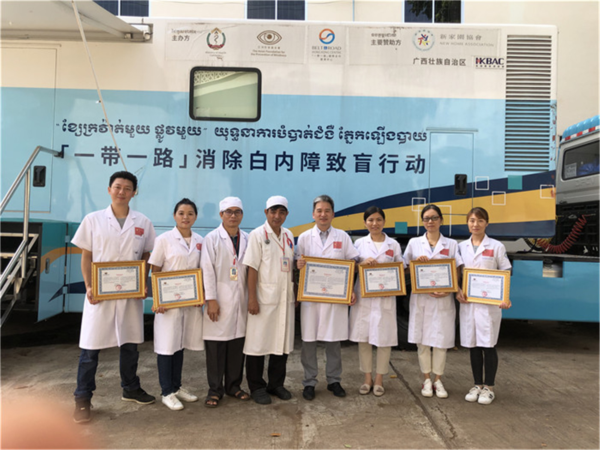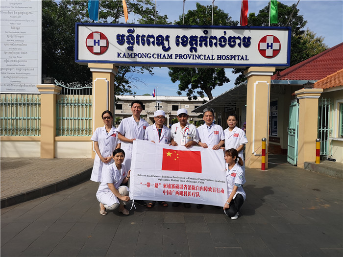 “一带一路”柬埔寨磅湛省消除白内障致盲行动项目是由全国政协副主席梁振英提议发起,由香港亚洲防盲基金会与广西并会同柬埔寨卫生部,共同开展“一带一路”民心相通医疗援助柬埔寨行动项目。该项目得到了柬埔寨香港商会的大力支持,计划在2018年至2019年期间,由广西派出医疗队前往磅湛省实施白内障复明手术,实现磅湛省白内障患者手术全覆盖,并培训当地医护人员。根据项目进展情况,自治区卫健委决定由市二医院组建广西第七批医疗队于6月下旬赴柬埔寨执行援外医疗任务。接到任务后,我院迅速完成医疗队组建任务——由医院眼科中心6名资深医护人员担任医疗队队员。