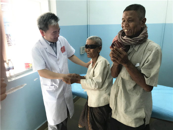 患者感谢医疗队为他们送来光明
