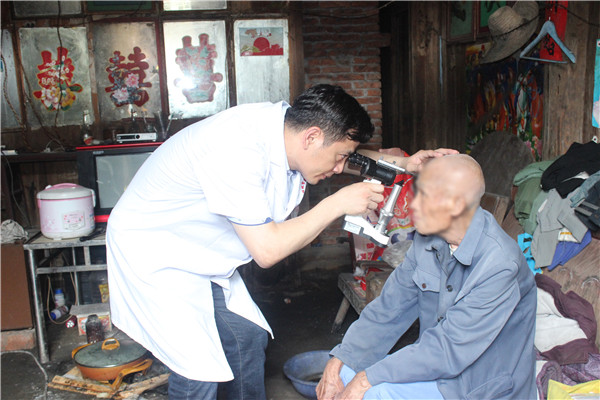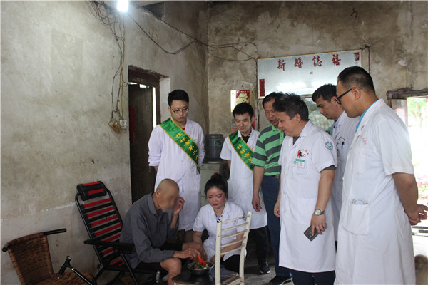 义诊结束后,医疗专家又深入到岩口村委的85岁的抗美援朝老兵唐志英和80岁骆家付家中为他们进行身体检查,唐志英有前列腺肥大,常年需要插尿管排尿,骆家付因老年痴呆,生活不能自理,左脚因创伤导致溃烂,专家为他们进行了诊疗后,为他们赠送了一些治疗药物。