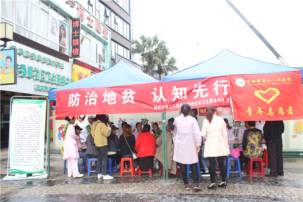 5月8日是 “世界地贫日”。为进一步加强地中海贫血防治宣传教育,营造全社会关心重视、支持参与地贫防控和出生缺陷防治工作的良好氛围,有效保障母婴安全和提高出生人口综合素质,我院“地贫之家”联合秀峰社区卫生服务中心组织内科、外科、产科、儿科及中医等科室医护人员在桂林步行街举行 “世界地贫日”大型宣传义诊活动。活动主题是防治地贫,认知先行。