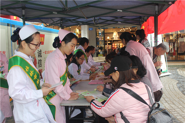 “地中海贫血综合征,是一组遗传性血红蛋白合成障碍性疾病,种类繁多,临床表现轻重不一。据调查,目前,桂林市现存中重型地贫儿有近300余例,目前大部分接受输血和药物去铁治疗,在政府、社会及各部门关注下,地贫患儿基本能得到治疗,但依然存在很多困难,许多家庭因病致贫。为此,积极开展产前基因诊断,是一项具有重要价值的预防措施。”在现场,产科医护人员为前来咨询的市民普及地中海贫血出生缺陷防治、优生优育等健康知识,儿科医护人员为前来咨询的家长普及地贫治疗知识并接受有关治疗问题咨询。其他科室医务人员也为市民提供了诊疗咨询服务。当天共为150余市民测量血压,发放宣传手册300余份。