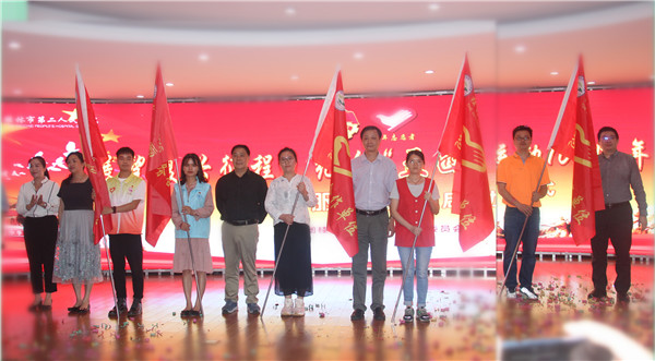 今年是“五四”运动100周年,为继承和发扬“五四”精神,激励和引领全院青年奋发向上,做新时代的奋进者、开拓者、奉献者,4月29日,我院团委在礼堂开展了“展望复兴征程,纪念‘五四’运动100周年”暨志愿者服务日启动仪式系列活动。广西师范大学、桂林理工大学、桂林市卫校、朝华夕秀美容美发学校、桂林和为桂社会工作服务中心等领导及志愿者与医院青年医护人员200余参加了此次活动。