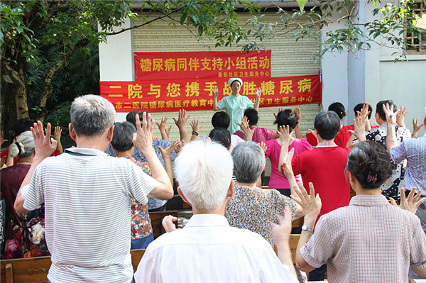 糖尿病是一种慢性病,发病初期由于还没有出现并发症,患者感觉不到其危害性,因此很多患者忽视血糖的管理,以至于在出现严重并发症时,给家庭和社会带来沉重负担。作为糖尿病健康教育管理示范单位,我院内分泌科一直致力于糖尿病防治知识的宣传教育,建立了健康教育学校,免费定期为患者上课,传授有关糖尿病防治知识,并通过糖尿病网络信息平台、微信公众号、QQ群等将糖尿病的防治知识不定期发送给患者学习。为了将糖尿病患者管理好,科室还通过组建同伴教育小组,让具有相似身体状况和经验的糖尿病患者在医疗照顾、生活实践、社会和心理方面互帮互助,定期开展糖尿病同伴支持活动和糖尿病病友联谊会,将糖尿病防治知识融入到游戏、歌曲等娱乐节目中,通过医患相互参与,共同促进患者及家属的防治意识提高,做到规范管理,自我防控,减少并发症的出现,达到健康生活的目的。