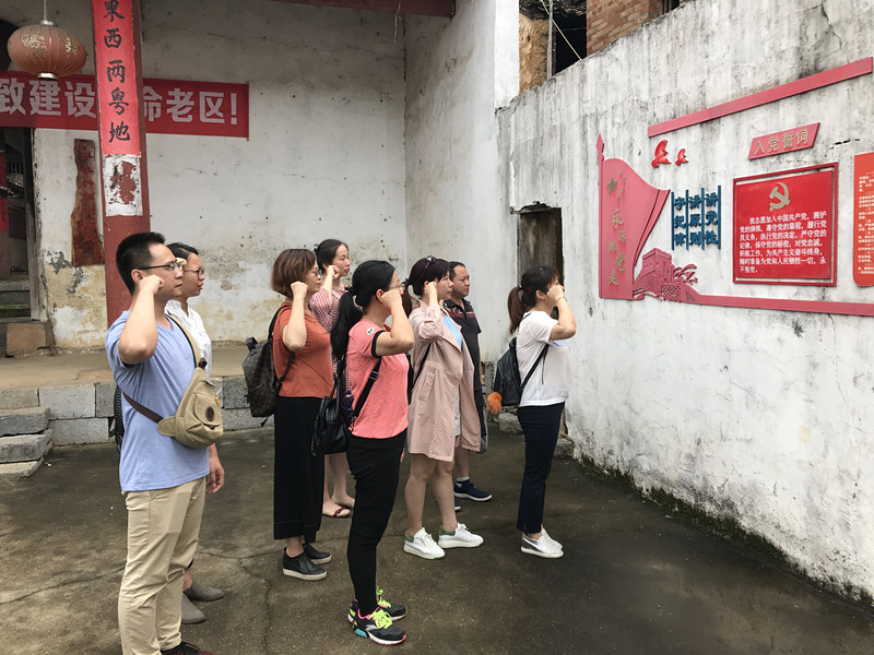 在青草塘红色教育基地,陈列的那一幅幅珍贵的照片和文字资料,把党员医生们带到了那艰难困苦的战争岁月,在中华民族面临危亡的时刻,共产党人来到这里宣传和发动群众组织武装,打响了在平乐境内抗击日寇的第一枪!在解放战争时期,这里的人民在共产党领导下,不怕牺牲,组建了坚强的地下交通站和平恭钟解放大队,为新中国成立作出了自己的贡献。