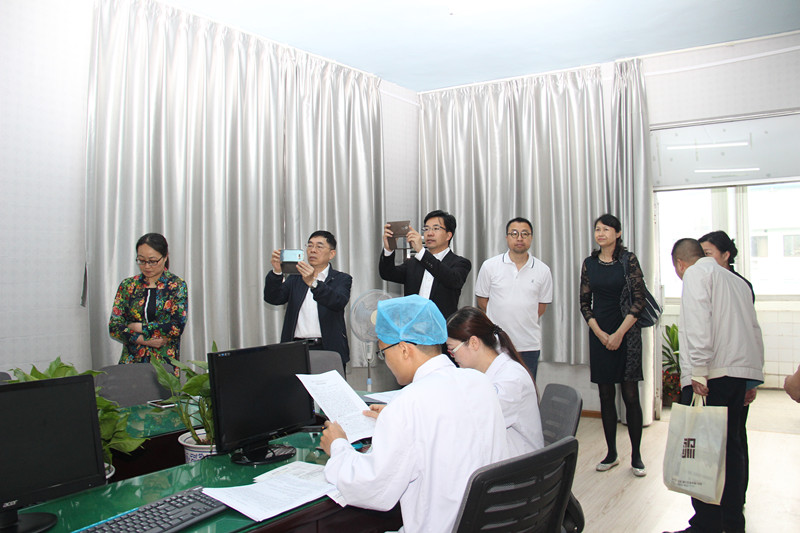 图为国家卫计委统计信息中心主任孟群(右二)、桂林市副市长何翔(右一)等领导在我院了解该院互联网医疗信息化建设情况.