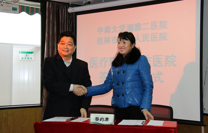 我院与中南大学湘雅二院成为协作单位后双方部分科室进行深度合作,迅速、有效地提高了医院的技术服务水平,图为湘雅二院院长周胜华与我院院长颜丽萍签约成为医疗协作医院。