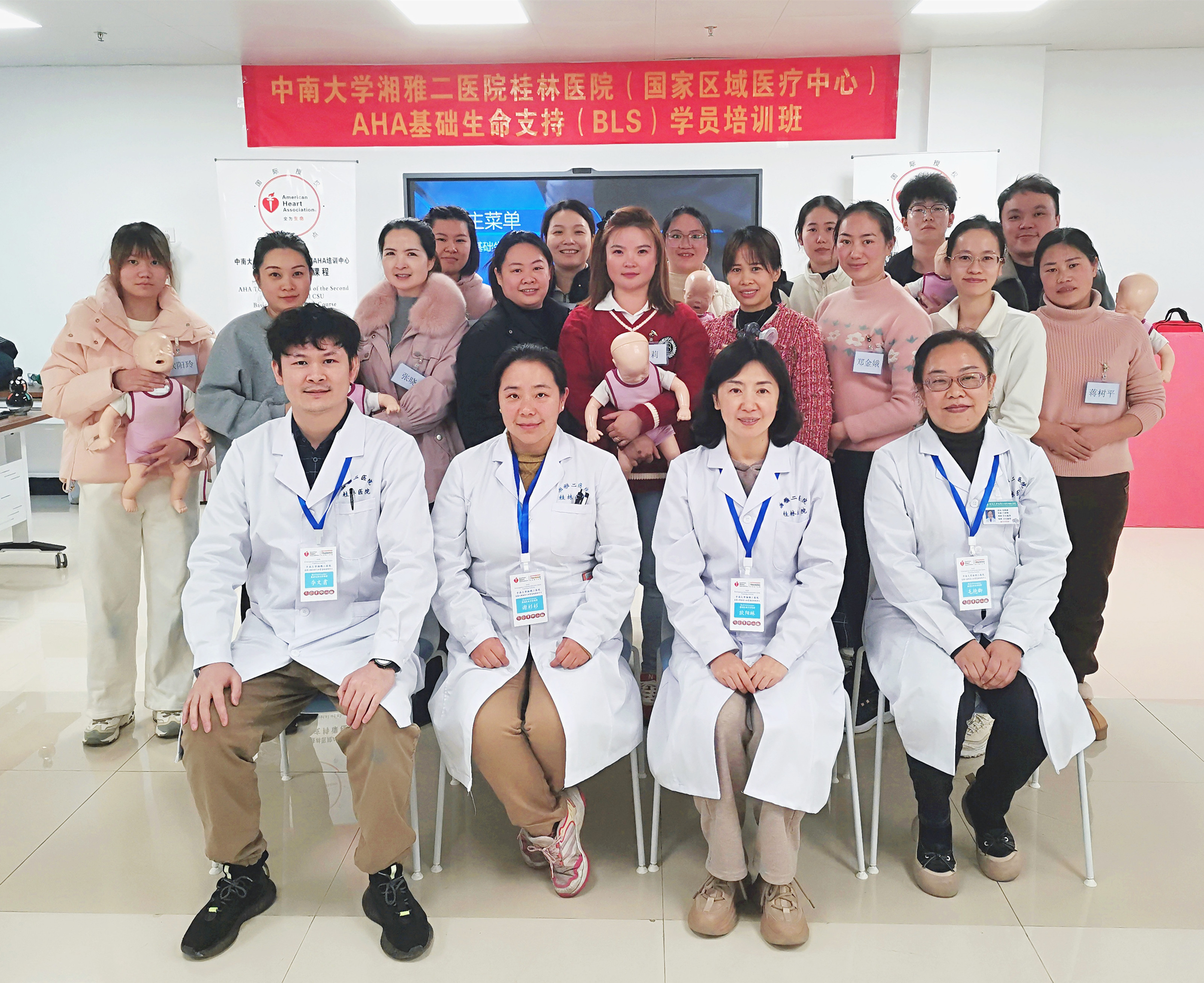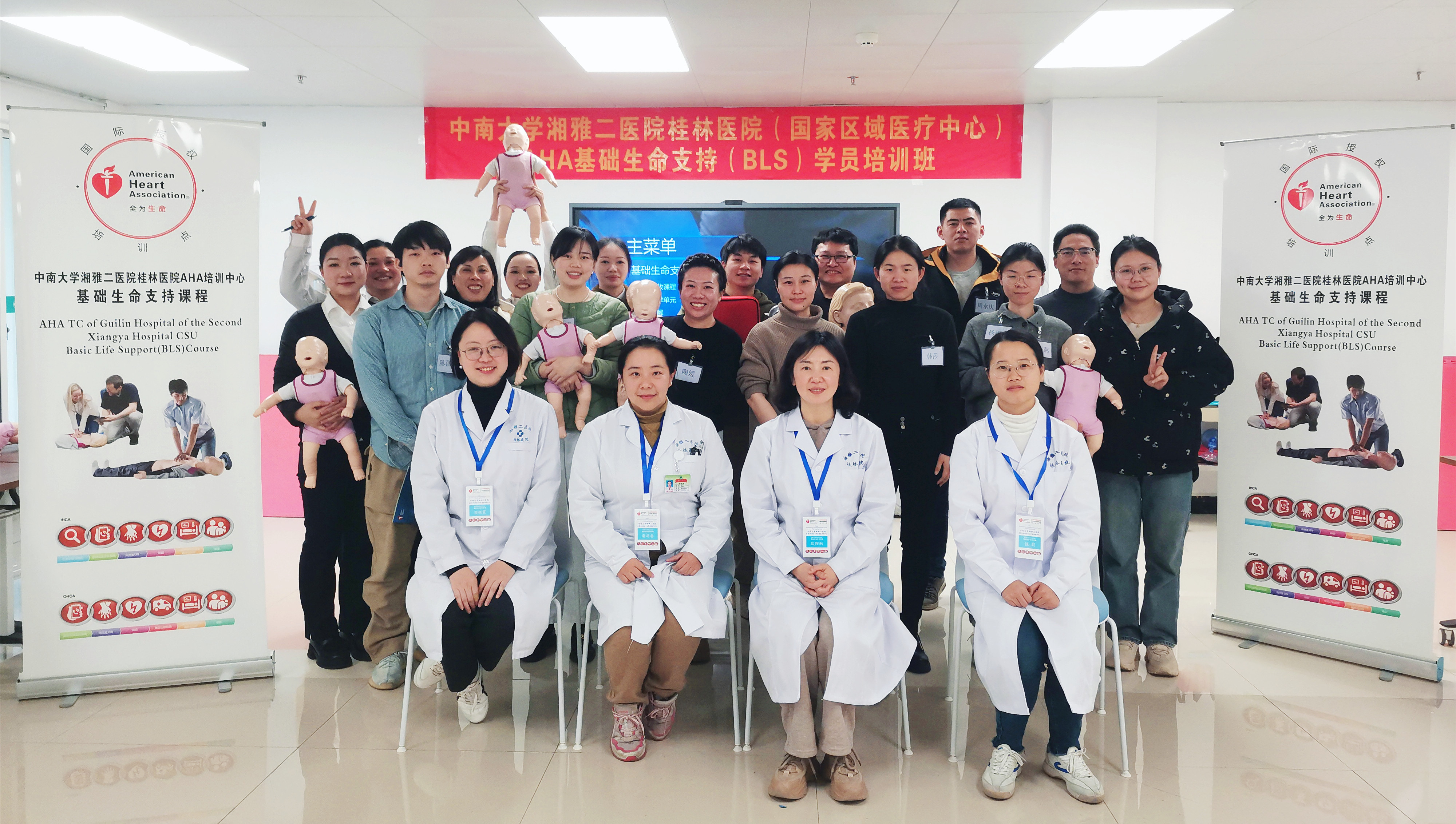 得益于医院领导的大力支持与湘雅二医院临床技能训练中心老师的倾囊相助,1月8日至9日,中南大学湘雅二医院桂林医院医学模拟中心成功举办了两期由本院师资主导的基础生命支持(BLS)培训课程。这标志着桂林医院在急救培训领域实现了质的飞跃,开启了本土导师主导培训国际一流标准化课程的新征程。