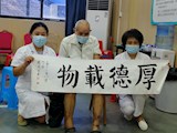 9月2日,桂林市第二人民医院驻叠彩区智慧谷新冠疫苗接种点的医护人员收到了一份特殊的礼物,年过九旬的廖大爷将一幅自己亲手写的字画交给该接种点的医护人员以示感谢。廖大爷将墨宝赠送给医护人员 据了解,8月3日上午,家住叠彩区的90岁高龄的廖大爷独自一人来到智慧谷新...