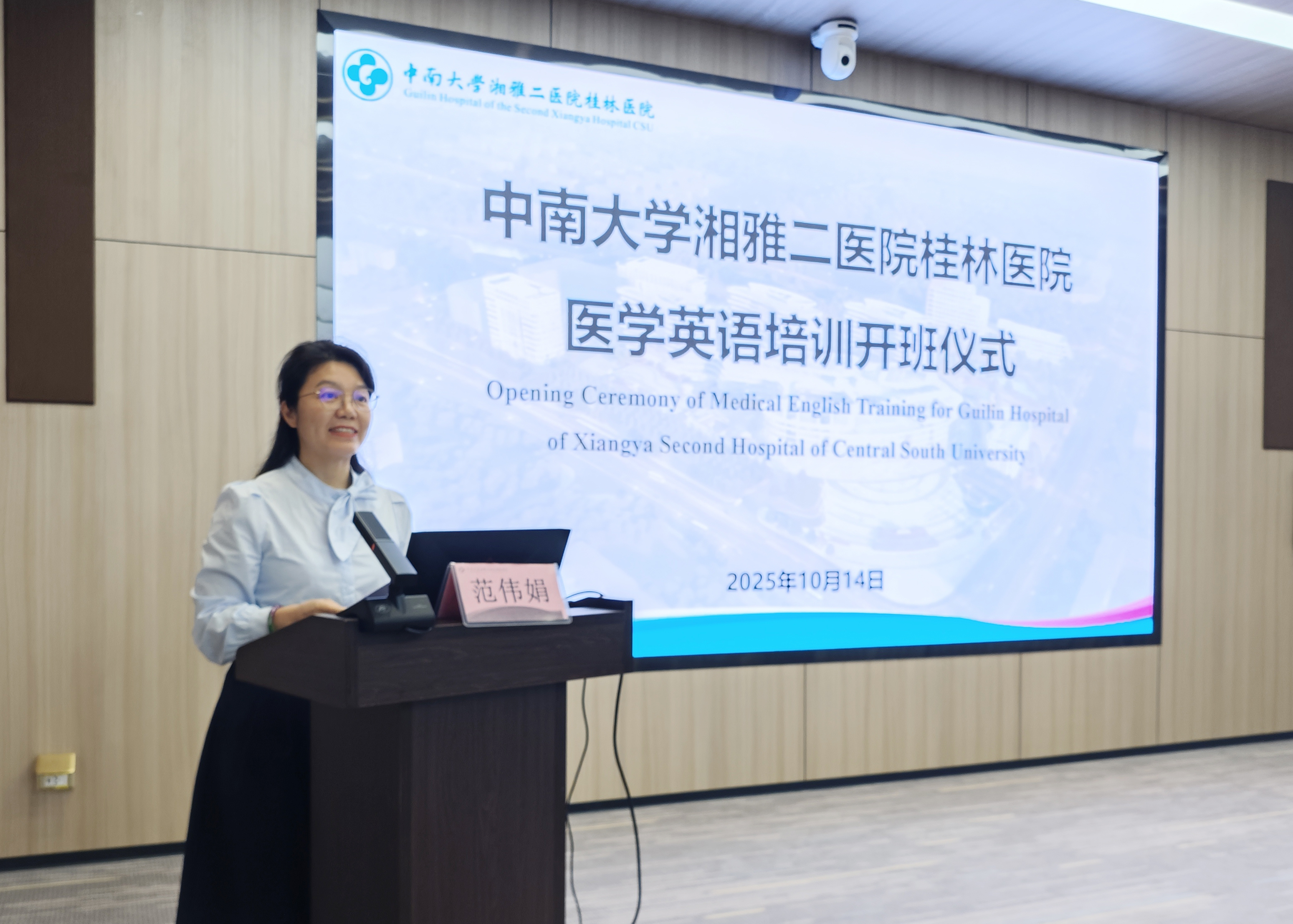 为进一步提升职工医学英语应用能力,助力提升医院服务水平与核心竞争力,近日,中南大学湘雅二医院桂林医院启动首期医学英语口语培训班。医院党委副书记范伟娟出席开班仪式并作动员讲话,强调了医学英语在跨境诊疗沟通和学术交流合作中的重要性,鼓励参训职工珍惜学习机会,做到学以致用。