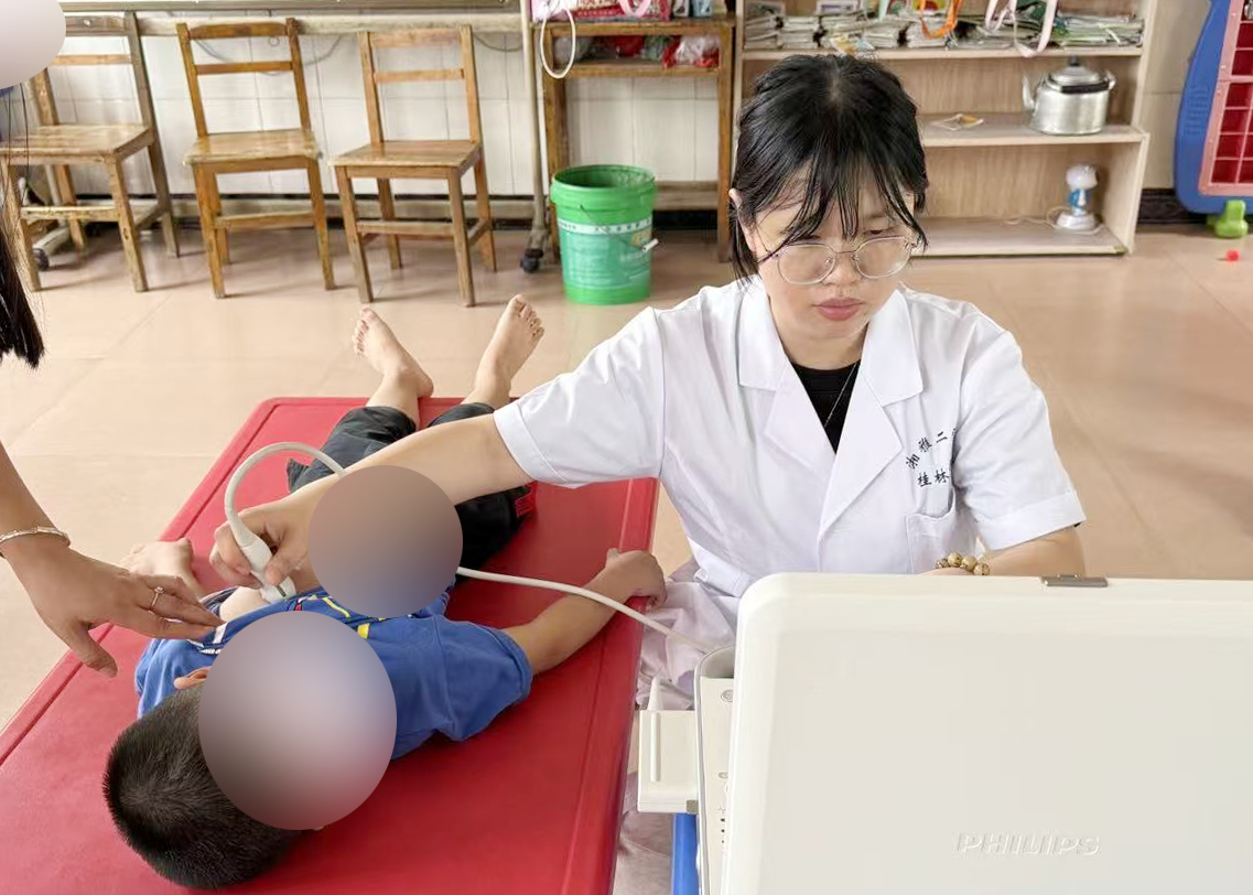 近半年来,由心血管外科执行主任张鸿带队,集结了心脏外科、心脏超声科、儿科等多学科精英的筛查团队,携带便携式彩色多普勒超声仪等精密设备,驱车数百公里,深入桂林市灌阳县各小学、幼儿园开展筛查工作。