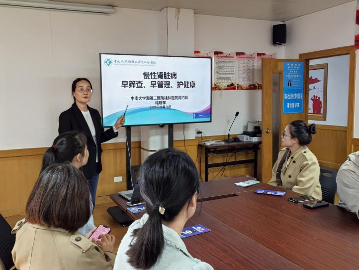 为深化医联体建设,将优质医疗服务送到居民“家门口”,近日,中南大学湘雅二医院桂林医院秀峰社区卫生服务中心联合肾病学科专家团队,在榕湖社区开展了以“慢性肾脏病:早筛查、早管理、护健康”为主题的健康讲座,并深入秀峰中心开展教学查房活动。