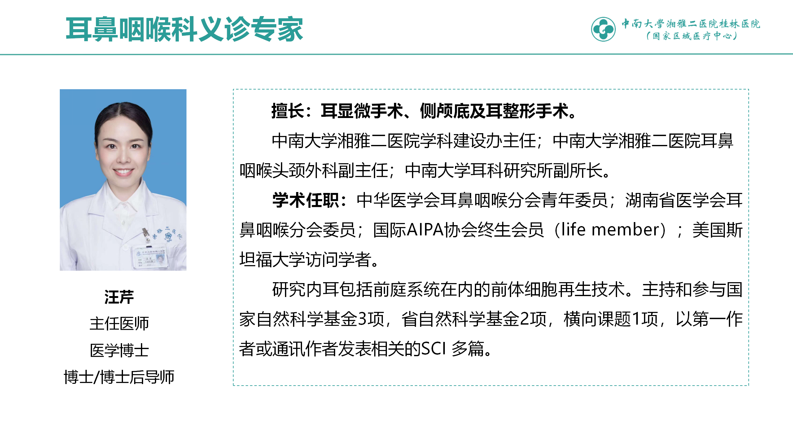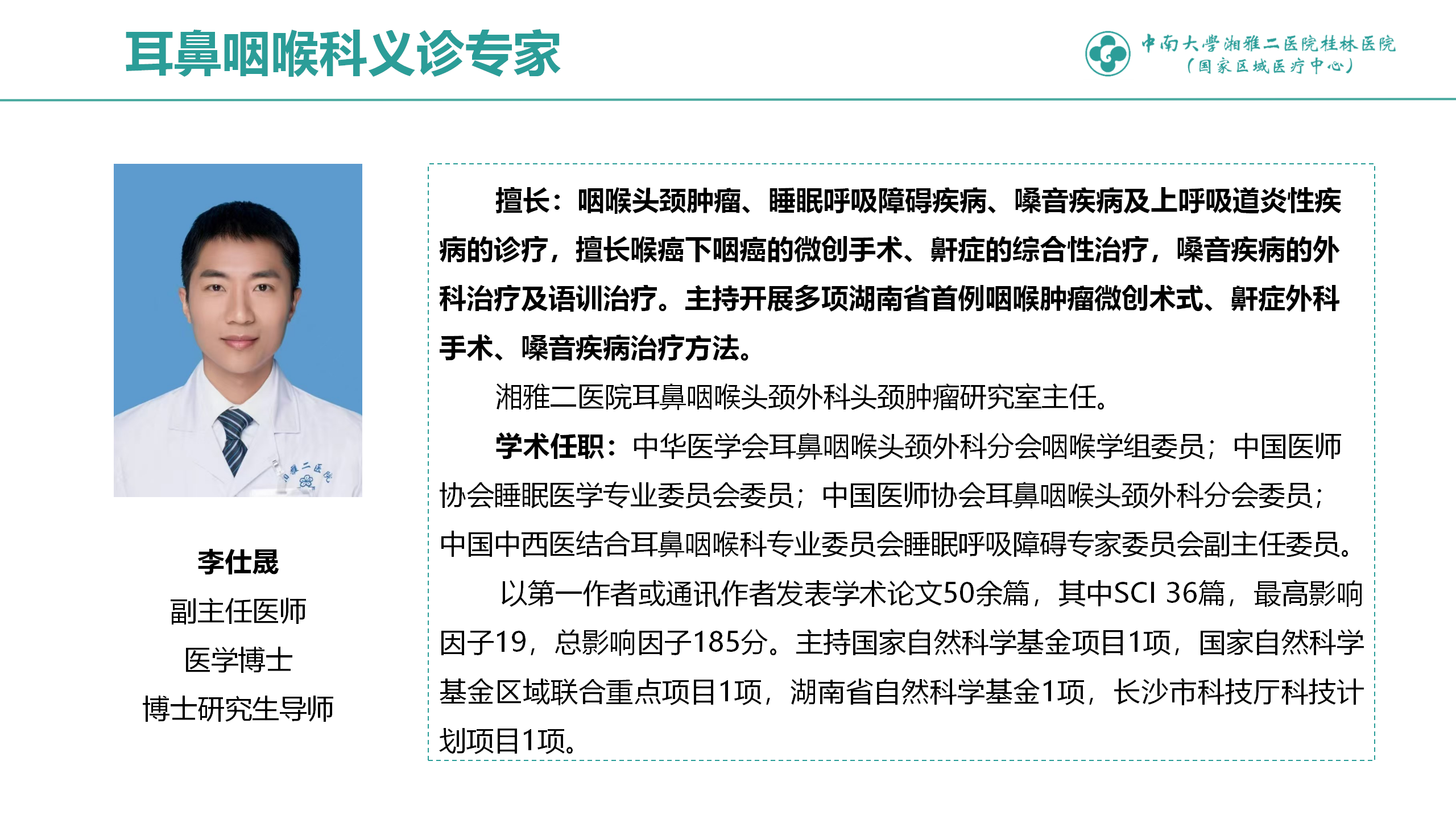 金秋送爽,健康同行。为了让桂林市民在家门口就能享受到国家级医疗资源,中南大学湘雅二医院专家团队专程前来,将在中南大学湘雅二医院桂林医院临桂院区举行大型多学科联合义诊,现场为您提供专业的健康咨询与诊疗服务。本次义诊团队涵盖儿科、眼科、口腔科、耳鼻咽喉科,现场免收挂号费及专科检查费,诚邀您携家人前来,为健康保驾护航。