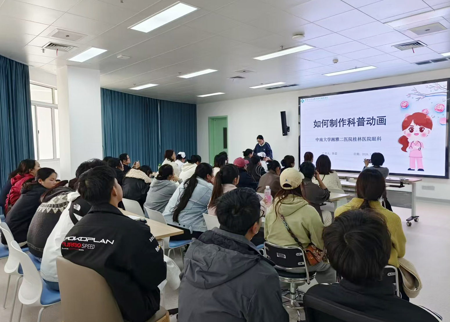 眼科医务人员陈思围绕“如何制作科普动画”开展专题培训,她结合当前新媒体传播特点,详细讲解了动画制作软件与AI技术在健康科普中的融合应用,分享了生动直观的创作思路与实操技巧,旨在提升小组成员科普作品的趣味性与吸引力,让专业医疗知识能够以更通俗的形式传递给公众。