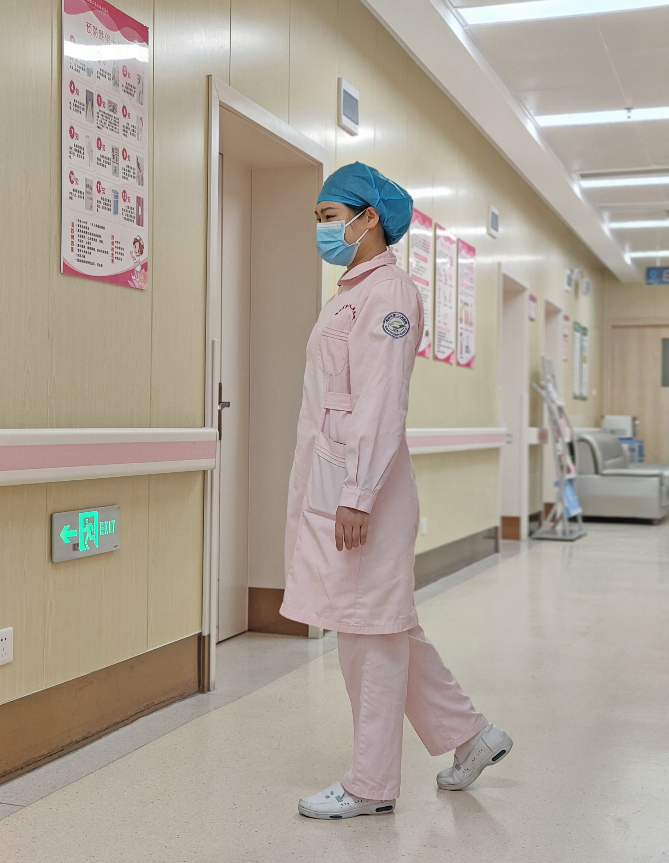 孕妇行走时应挺直背部、抬头、收紧臀部,前进时脚后跟先着地,全脚踩实,保持全身平衡,稳步行走。