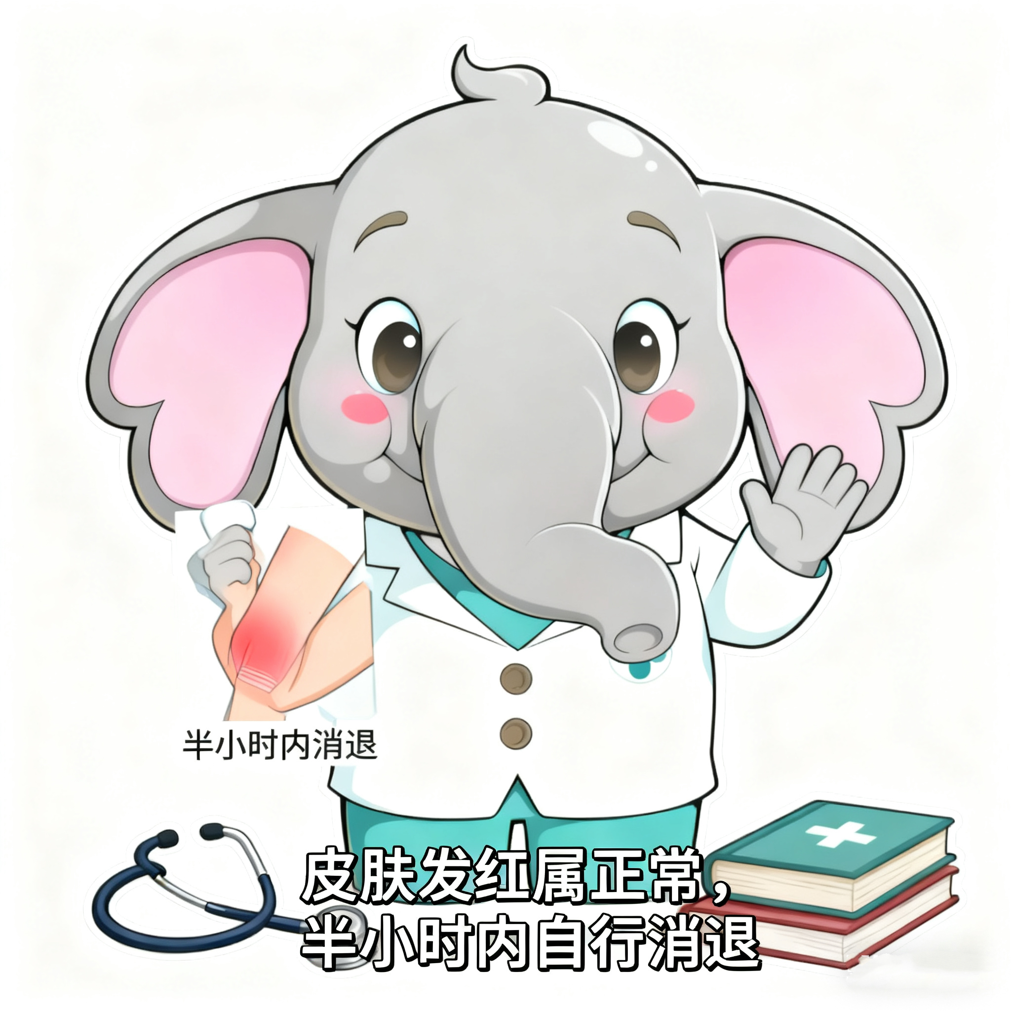 部分患者治疗后局部皮肤可能发红,通常半小时内可自行消退,无需过度担心;